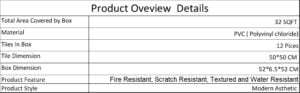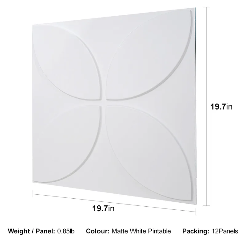 Panels Come in a box of 12 panels, cover 32 square feet. Size: 19.7″ x 19.7″ (500mm x 500mm).